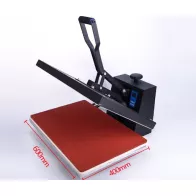 Presse à chaud 40 x 60cm manuelle - 40cm x 60cm - TEMPÉRATURE MAX 350°C - AFFICHAGE En continu de la température réelle et du temps restant - Minuterie électronique automatique avec sonnerie - Puissance 1800W - pression facilement ajustable par la molette - pression maximale: 250 g/cm2 - Dimensions 68 x 43 x 38 cm - Poids 36 Kg